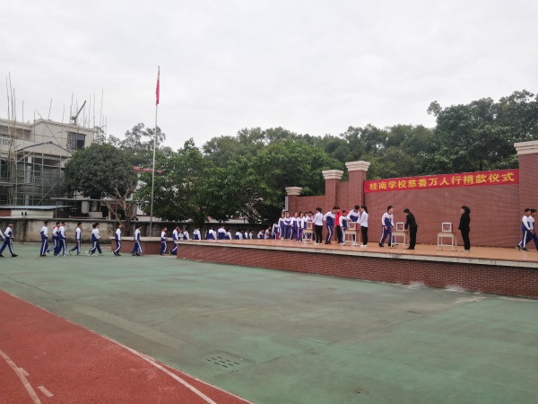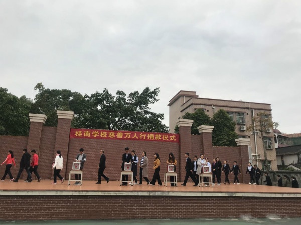 為積極響應中山慈善萬人行活動的倡議,弘揚博愛精神,倡導中華美德,營造互幫互助互愛的良好氛圍,培養學生樂于助人、樂于奉獻的品質,2019年12月16日上午,桂南學校舉行2019年“慈善萬人行”捐款活動。桂南學校全體教職工和全體學生積極參與,奉獻愛心。