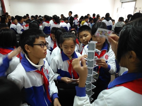 本次數學活動周內容豐富,形式多樣,老師們精心設計活動。在五天時間里,學生們體會“學數學、用數學、創數學”的過程。老師們利用早讀和活動課時間分年級舉辦了多種形式的數學活動:一年級的“口算比賽”, 二年級的“翻撲克牌游戲”, 三年級的“創意拼多多”, 四年級的“體驗一億有多大”, 五年級的“創意撲克牌搭建”, 六年級的“圖形設計師”。 學生們在活動中提高了想象力、創造力,如:三年級的學生,以組為單位分工合作、發揮想象,把樹葉拼出各種各樣的圖形;六年級的小設計師,在規定的時間內利用圓規和三角板設計出各種美麗的圖案。學生們紛紛表示這次的活動又好玩,又學到知識。