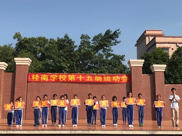 2019年10月31日,桂南學校小學部舉行了為期兩天的秋季田徑運動會。上午8:30,開幕式伴隨著激昂的運動員進行曲拉開了帷幕,校旗隊、鼓號隊、各班運動員隊有序進場,一個接一個的方陣在激情、嘹亮的口號聲中踏著整齊的步伐經過主席臺,接受檢閱。裁判員代表和運動員代表進行宣誓,開幕布式在余建校長熱情洋溢的講話中落下帷幕。