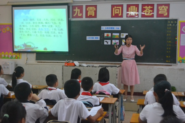 龍泉學(xué)校譚雪梅老師在502班進(jìn)行《少年中國說》課例展示。譚老師從“小書屋”講解歷史背景入手,以親切的教態(tài)和聲情并茂的授課技巧贏得了學(xué)生的喜愛。她帶領(lǐng)學(xué)生以讀促思,以思生情,一次次地激發(fā)起孩子們報效祖國的進(jìn)取之心。