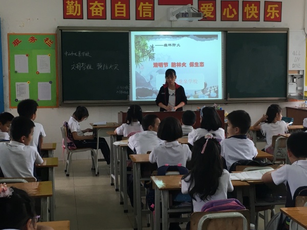 主題班會上,各班主任組織全體學生學習了《中華人民共和國消防法》、《中華人民共和國森林法》中森林防火相關條款,接著通過觀看視頻,聽教師講解,學生們知道了誘發森林大火的起因以及注意事項。班主任老師號召大家踐行鮮花祭祀、網上祭祀、植樹祭祀等文明、低碳的祭掃方式,杜絕上墳燒紙、燒冥物、燃放鞭炮等不文明的祭祀行為。