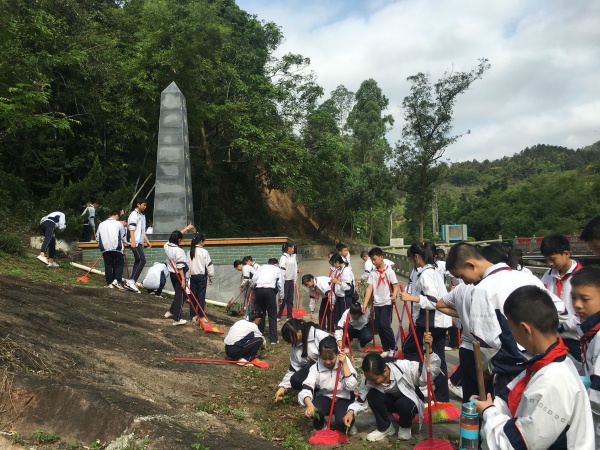 首先,同學們在“革命烈士永不垂朽”豐碑周邊進行清掃,每一位同學都很認真的鋤草,看著他們那崇敬的眼神,不經想起習總書記說過的話,“廣大青年要堅定理想信念,志存高遠,腳踏實地,勇做時代的弄潮兒,在實現中國夢的生動實踐中放飛青春夢想,在為人民利益的不懈奮斗中書寫人生華章。”在莊嚴肅穆的烈士紀念碑前,少先隊員代表和入團積極分子向烈士敬獻了鮮花,并向革命烈士默哀致敬。并朗誦了詩歌《不滅的精神代代相傳》,表達了對革命烈士的崇敬之情。接著,少先隊大隊輔導員張暉映老師作了動員講話,希望同學們以實際行動繼承先烈們的優良傳統,傳承偉大的革命精神,做有家國情懷的有志少年!