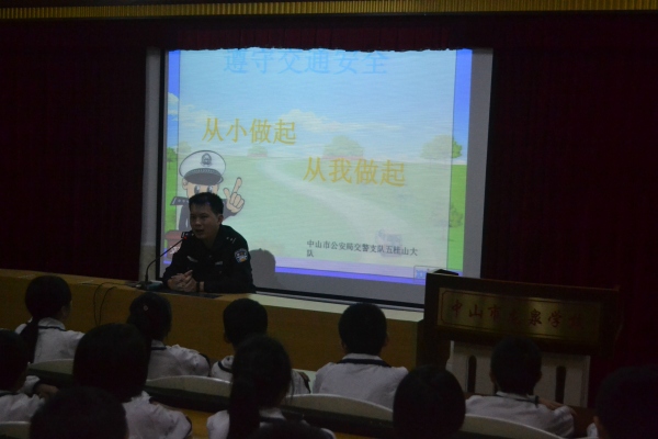 交通安全與每一個人、每個家庭息息相關。為了廣泛傳播交通安全知識,培養學生良好的交通安全意識,強化學生自我安全保護能力,2月21日,中山市龍泉學校邀請五桂山交警大隊周亮君警官來校為同學們做交通安全教育講座。