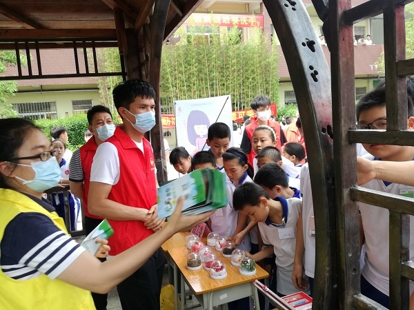 本次禁毒宣傳活動主要以游園活動為主。各位社工在校園內設置了禁毒知識宣傳展位,同學們利用課間時間紛紛來到各展位參加游園活動。在仿真毒品展示處,學生根據各位社工和志愿者的指引,認真細致地觀察仿真毒品的形態、色澤。從一件件展品中,學生們了解到了“K粉”“海洛因”“大麻”等常見毒品的模型,初次見到“開心水”“郵票”“彩虹煙”等新型毒品模型。參觀學生也真切地感受到毒品離我們的生活并不遙遠。
