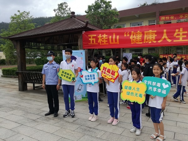 為進一步加強學生們對毒品危害的認識,提高抵御毒品的能力和增強禁毒意識,6月8日下午,在五桂山團工委及禁毒辦的領導下,向日葵社工來到桂南學校開展主題為“健康人生 綠色無毒”的禁毒宣傳活動。