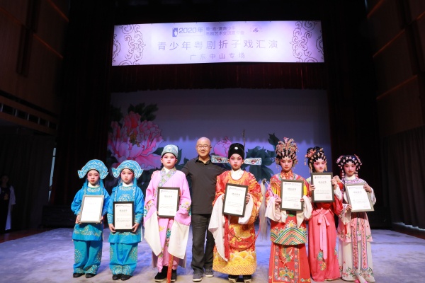 中山市小欖鎮(zhèn)績西小學(xué)八位師生為觀眾展示了《牡丹亭之游園》、《小送子》兩個經(jīng)典劇目,學(xué)校10名家長來到現(xiàn)場觀看了演出,給粵劇童星們鼓勵打氣!廣東舞蹈戲劇職業(yè)學(xué)院粵港澳粵劇教育研究中心主任鄧志駒老師更為他們頒發(fā)了證書。