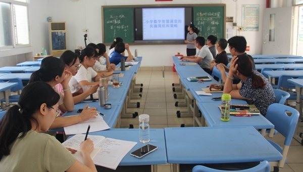 隨后,王衡珊老師進行了題為《小學數學智慧課堂的實施現狀和策略》的講座。王老師從智慧課堂實施的背景,小學數學智慧課堂教學的現狀,還有小學數學智慧課堂教學實施的策略三個方面進行了講解。她提出,智慧課堂對于數學教學而言,是大膽的創新,充分說明信息化教育模式已經成為時代的必然趨勢。老師們必須做好充分的準備,共同做好智慧課堂的建設工作。