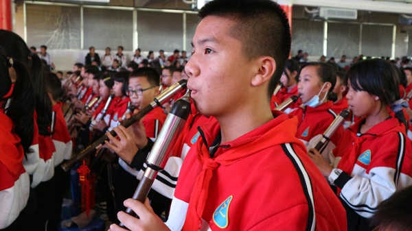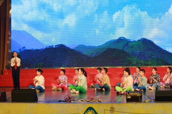 節目一開場,就由初一級全體同學帶來的巴烏演奏,那悠揚的樂聲讓人陶醉。曾繁富老師和付凱的吉他彈唱激情且蒼涼,瞬間又勾起大家對青春歲月的無盡懷念與慨嘆。音樂劇《圓夢》以周虎老師為原型,完美地演繹了他感人的山區支教經歷,讓人熱淚盈眶。舞蹈《振鷺于飛》和《茉莉花開》校舞蹈隊的孩子們靈動而柔美,將舞蹈演繹得美輪美奐?!豆旁娦马崱防锎蠹荫雎犃斯旁姡瑐鞒私浀?,將古色古香的詩歌完美結合?!陡枨疅犯杪暳萌诵南?,委婉動聽。歌曲風格迥異,流行歌曲的演唱,或是簡單明快,或是深情。經典老歌的演繹也博得了滿場掌聲?!段倚臀倚恪番F代、拉丁、街舞將舞臺引爆,孩子們瀟灑而奔放。由李霞、孫立輝、陳潔蓉、張友龍四位老師傾情演唱的《我和我的祖國》,將節目推到了高潮。