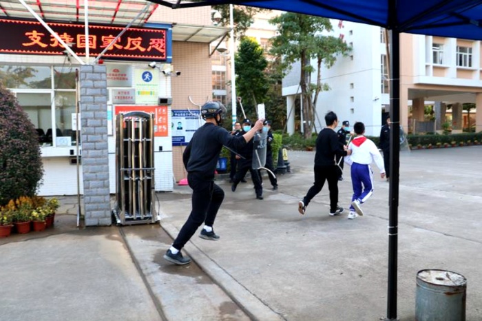 永寧中學通過反恐防暴演練、主題班會、室外宣傳等系列主題活動,進一步增強了學校保安員和師生的反恐防暴意識和應急處置能力,也檢驗了學校安全防范工作的實效性和存在問題,確保了校園的安全、穩定、和諧。