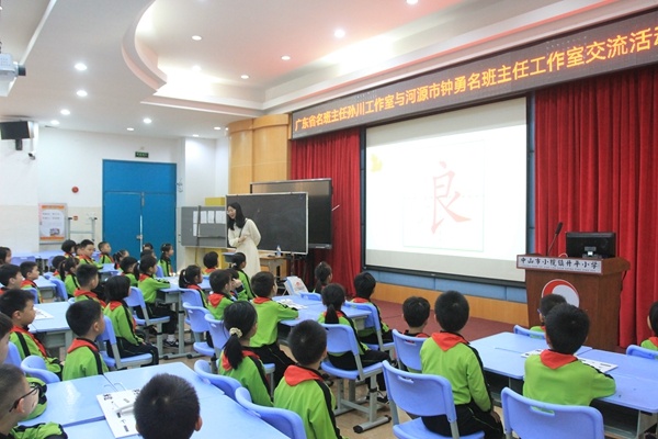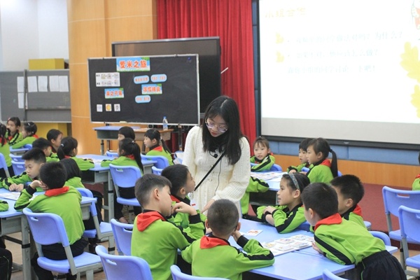 隨后,鐘勇老師一行來到報告廳,觀摩了一節由升平小學青年教師黃思婕老師執教的主題班會課。在孫川老師工作室團隊的帶領和指導下,黃思婕老師帶著二(3)班的孩子共同呈現了一堂以“節約糧食”為主題的班會課。精美的板書、層層遞進的教學環節設計、精心設計的互動環節,黃老師帶領孩子們一起認識糧食的來之不易,以及如何將珍惜糧食落到實處。整節課氣氛活躍、主題鮮明,得到了現場觀摩的老師們一致好評。這不僅體現出升平小學青年教師的積極進取,更彰顯了廣東省名班主任孫川工作室團隊積極的輻射帶動作用。