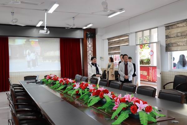 一進校園,廖誠書記就被校園里濃濃的文化氛圍以及和諧愉悅、耳目一新的環境布置吸引住了。