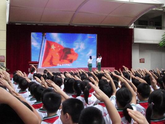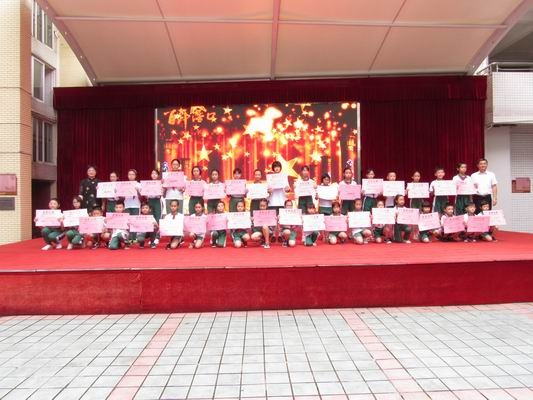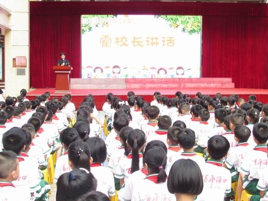 首先,由主持人宣布典禮開始,在莊嚴的升旗儀式后,霍熔坪校長上臺致辭。霍校長帶領全體師生回顧精彩而又充實的一學期。學校在教育教學工作取得了突破性的發展。一共獲集體獲獎20多項:廣東省國際跳棋優秀特色學校、中山市師德工作先進集體、中山市依法治校示范校、中山市文明校園、中山市先進年級家長委員會、中山先進班級家長委員會、中山市特色班集體、小欖鎮目標評估先進單位……