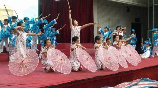 天公作美,早上下起了毛毛細雨,也許是感受到同學們對故人的緬懷和追思,讓節目與現場環境相互映襯,配合得淋漓盡致。正因為這樣,同學們哪怕冒著寒風,頂著細雨,仍然面帶微笑,有條不紊的進行進行表演。同學們穿著整齊的漢服,手拿竹卷,就像古人求學孜孜不倦的樣子,中間十位領舞的小姑娘穿著單薄的旗袍,還赤腳上陣,這英姿颯爽的身影在舞臺上來回穿梭。在莊嚴的國旗下,讓大家看到了“紅軍不怕遠征難”的精神!心存信仰和感恩的心,緬懷那些革命先烈,再難也要完成任務,歌舞結束后的熱烈鼓掌便是給同學們最大的鼓勵。