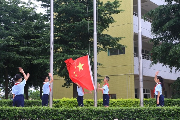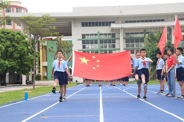 九洲基小學全體師生,在驕陽照耀下,舉行了慶祝六一兒童節一系列活動。上午8時,鼓聲陣陣,樂韻悠揚,隨著鮮艷的國旗徐徐升起,揭開了活動的序幕。莊嚴的升旗儀式后,四(4)班的陳怡婷同學作了國旗下講話,她號召同學們:“我們要陽光自信,積極進取,做新時代的五好少年。”隨后,黃景鋒副校長致辭,他鼓勵同學們:“要在九小尊重教育理念的浸潤下,在老師的辛勤教育和幫助下,好好學習,強健體魄。”