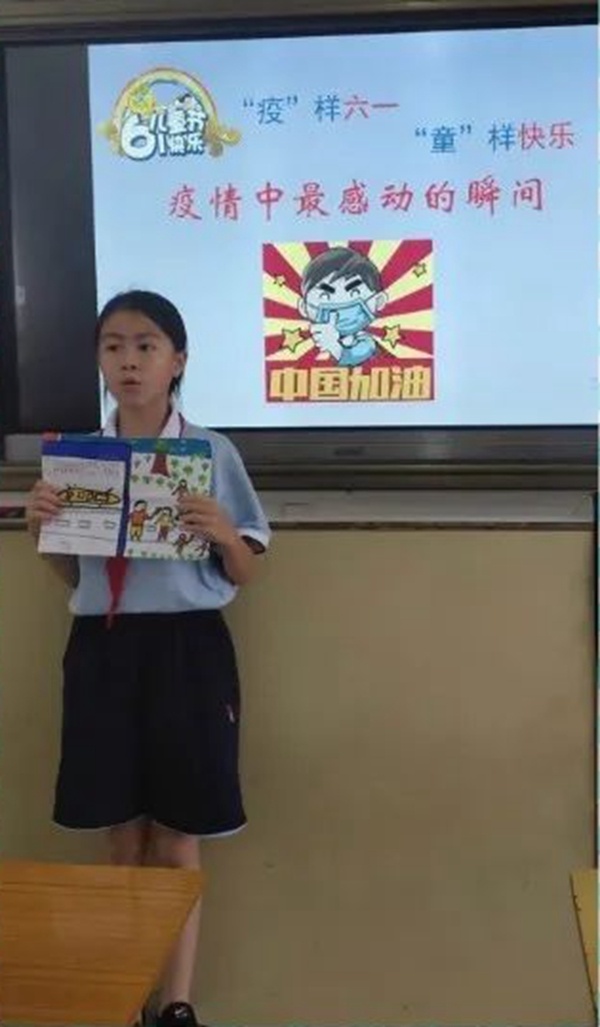 下午,各班開展“‘疫’樣六一,‘童’樣快樂”主題慶六一活動。各班慶祝形式多樣:游藝活動、團康活動、朗誦比賽、交流疫情期間最讓人感動瞬間、電影欣賞等。其中一年級先對新隊員開展了隊前教育活動,然后再開展班級慶祝活動。