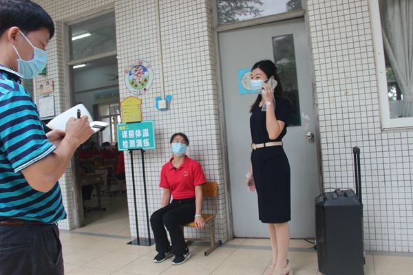 在第二場(chǎng)景“課前體溫檢測(cè)”中,演練模擬了上課前任課老師逐個(gè)對(duì)學(xué)生進(jìn)行體溫測(cè)溫,檢測(cè)到一學(xué)生體溫較高,并伴有輕微咳嗽癥狀,此時(shí),上課老師、班主任、校醫(yī)及學(xué)校疫情防控工作小組演示了一系列規(guī)范做法。如安撫全班同學(xué)情緒,致電班主任、校醫(yī),詢問其身體情況及外出、接觸人員等情況,確認(rèn)其有發(fā)熱現(xiàn)象,無流行病學(xué)史。經(jīng)學(xué)校防疫工作小組指示,班主任電話聯(lián)系家長將學(xué)生接走就醫(yī)并做好登記記錄。