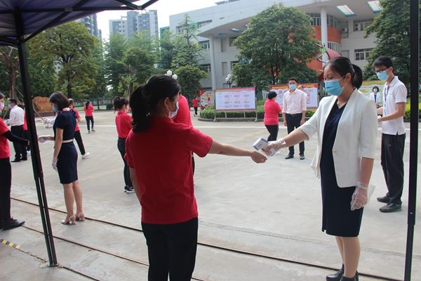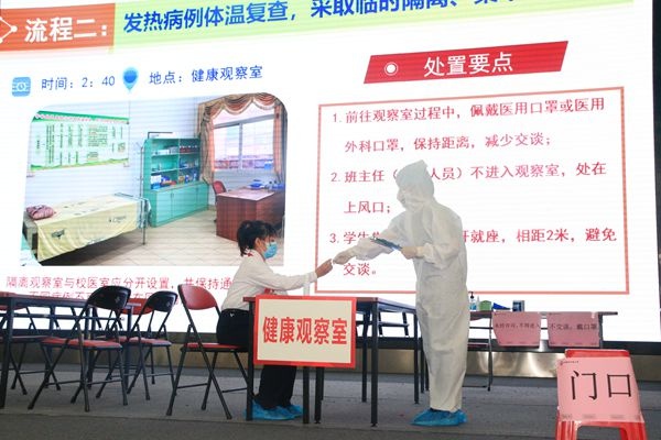 本次模擬演包括“返校體溫篩查”、“課前體溫檢測(cè)”、“午餐演練”、“學(xué)生午休演練”、“放學(xué)演練”、“放學(xué)后的消毒演練”、“新冠肺炎疫情防控應(yīng)急處置演練”等七個(gè)場(chǎng)景,模擬師生在校一天的主要學(xué)習(xí)和生活場(chǎng)景,以及出現(xiàn)突發(fā)情況的處置措施。