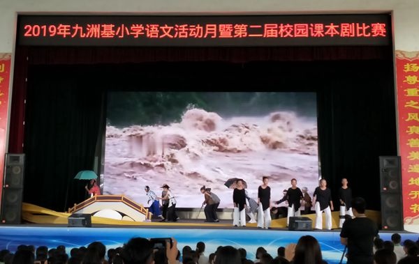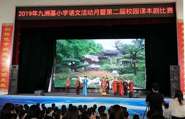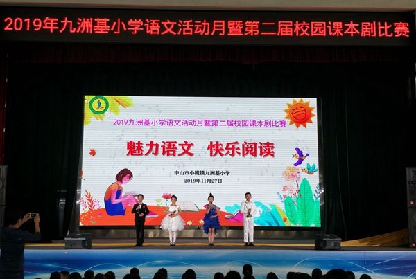 2019年11月27日下午,2019年九洲基小學語文科組第二屆校園課本劇決賽在該校體育館隆重舉行。擔任本次大賽評委的有:廣源小學盧寶華老師、埒西一小學羅海燕老師、績西小學陳瑞燕老師、盛豐小學梁燕霞老師、中心小學李韞婷老師。本次大賽作為本次語文活動月的重頭戲之一,以“魅力語文、快樂閱讀”為主題,共有11個班級成功晉級決賽參與角逐。參賽的劇目既有中華經典故事、又有時代歷史名篇,既表現了英雄贊歌,又傳遞了兒童世界的五彩繽紛。一方小小的舞臺,凝聚了古今中外的千年智慧,演繹著一段段可歌可泣的悲歡離合,喜怒哀樂。