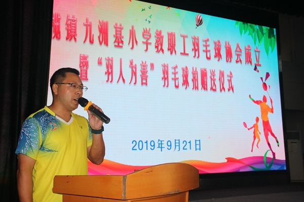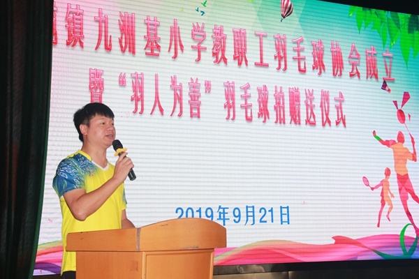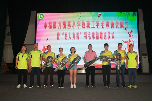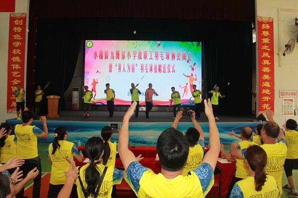 為了營造陽光快樂健康的和諧校園, 9月21日在體育館舉行了九洲基小學教工羽毛球協會成立儀式。參加活動的有:小欖鎮創意菊城“羽人為善”公益項目負責人盧錦泉,九洲基羽毛球協會會長潘漢輝,副會長顏炎江,九洲基小學校長艾斌,副校長黃景峰。