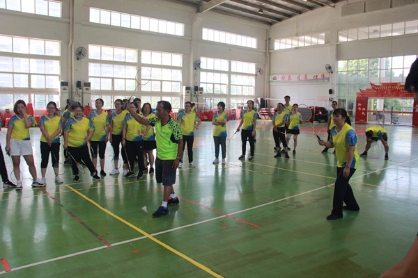 在宏亮的國歌聲中,朱柏霖老師宣讀了九洲基小學教工羽毛球協會的章程。協會的宗旨是凝聚學校教工,發展推動學校羽毛球運動的普及和技術水平的提高,促進學校精神文明建設,增進教師情感交流,提高教工的身體素質,倡導積極健康人生,展現教工風采,構建和諧校園。協會有完善的組織機構。艾斌校長擔任會長,黃景鋒副校長擔任副會長,“羽人為善”負責人盧錦泉先生成為了協會的顧問,九洲基羽毛球協會會長潘漢輝先生、顏炎江先生為技術指導,袁陽輝老師、陳彩霞老師是執行組組長。《九洲基小學教工羽毛球協會章程》明確了隊員是由學校羽毛球愛好者組成;隊員們在團隊活動中以“健身、友誼、交流”為宗旨,本著鍛煉為主、安全第一、交流為重的原則,自覺維護羽毛球隊的名譽,遵守協會的規章制度,認真 參加日常活動,努力學習,不斷提高羽毛球技術水平。