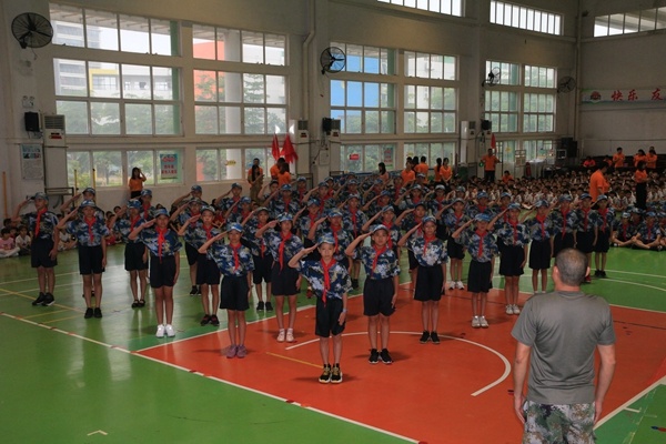 隨后,六(2)班和六(4)班分別進(jìn)行了暑假夏令營整齊有力的會(huì)操展示,六年級(jí)全體同學(xué)也向大家演示了軍體拳,六年級(jí)的大哥哥大姐姐以颯爽英姿博得陣陣掌聲。