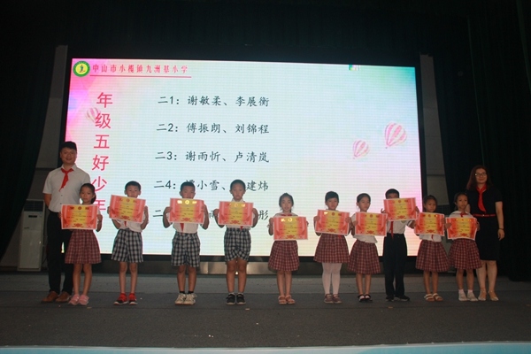 散學(xué)典禮中表彰環(huán)節(jié)由梁雪芬老師主持,梁老師宣讀了校五號(hào)少年、成績優(yōu)異獎(jiǎng)、書香家庭、武術(shù)之星、體育之星等獲獎(jiǎng)名單,最后還對(duì)本學(xué)期的校級(jí)優(yōu)秀教師、文明班、優(yōu)秀正副班主任等進(jìn)行了表彰,九洲基社區(qū)領(lǐng)導(dǎo)及九洲基小學(xué)行政為獲獎(jiǎng)學(xué)生、老師和班級(jí)頒獎(jiǎng)。