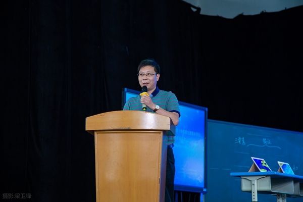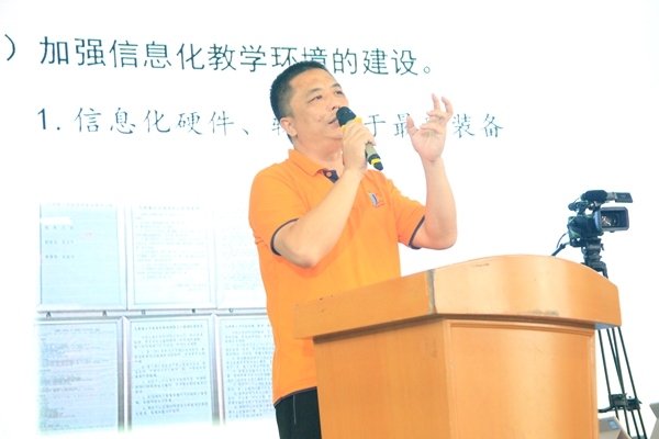 在總結環節,市教研室陳明宏老師高度肯定九洲基小學在活動準備、具體工作安排、課程質量、后勤保障等多方面所做出的成績,并表示九洲基小學的互動課堂展示可以作為一個信息技術與學科融合的范本進行推廣和學習。九洲基小學艾斌校長也從本校現狀、發展規劃、理性思考及做法等四個方面向大家匯報了該校信息化建設與發展情況。