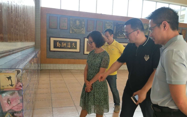 張委員、盧局長一進校園,就走進聯豐小學一樓藝術展廳,一邊觀看師生的書畫、木刻作品,一邊同學校行政交流學校藝術教育的特色和努力方向。走出藝術展覽,來到學校運動場,觀看同學們的體育活動,學生們紛紛禮貌的向客人打招呼。之后,大家又來到學校飯堂,實地考察了解學校未來擴建的規劃場地,聽取了學校行政的詳細匯報。一行人來到學校側廳,張委員饒有興致地了解了學校“課外閱讀淘寶箱”活動的運作開展情況。走進一年級教室,看到教室內整齊的桌椅擺放、干凈的衛生和豐富班級文化,張委員給予充分的肯定。