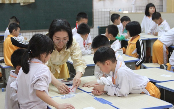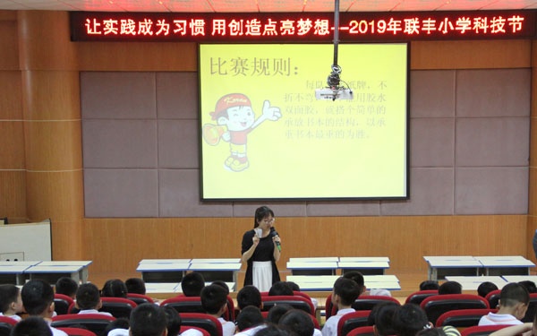 陽光明媚,春風和煦。在這舒服的天氣里,中山市小欖鎮聯豐小學一年級的小朋友利用大課間時間進行了一場有趣的、以“小紙牌,大力量”為主題的科技競賽活動。