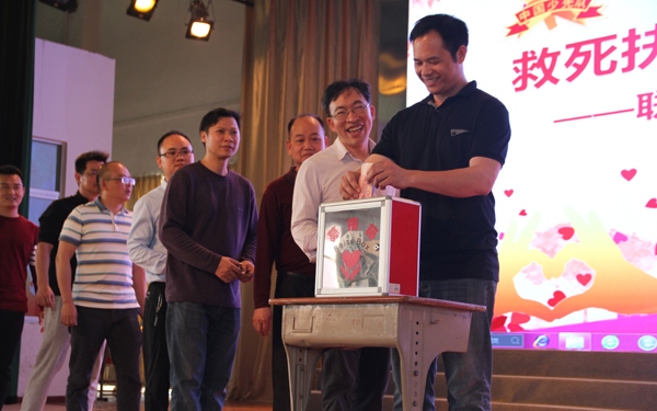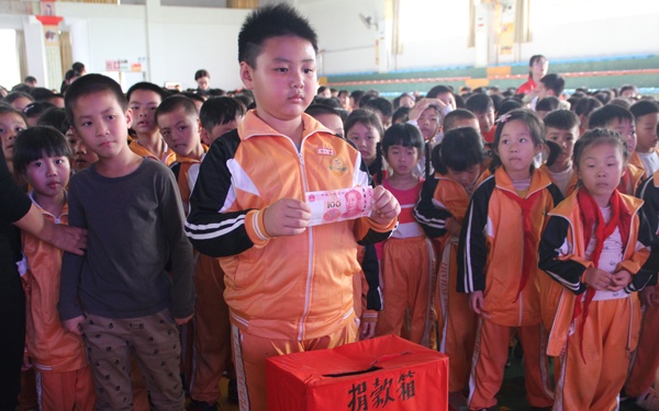 在《我們與愛同行》那優美的旋律中,捐款活動正式開始。在劉策校長的帶領下,聯豐小學全體教師上臺奉獻愛心,緊接著全校一千多名學生也奉獻出自己的小愛心:10元,20元,50元,100元……一份份愛心伴隨著一筆筆捐款流入捐款箱里,每個人都獻出著自己的一份綿薄之力,用自己的實際行動詮釋了一份愛的奉獻、一份感恩。最后合計,聯豐小學老師和全體隊員們一共捐出三萬多善款。