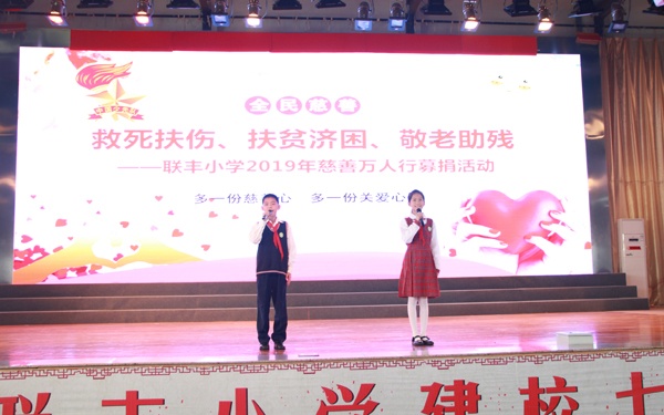 2019年2月20日下午,聯豐小學全校一千多名隊員齊聚體育館,舉行以“救死扶傷、扶貧濟困、敬老助殘”為主題的2019年慈善萬人行愛心捐款儀式。