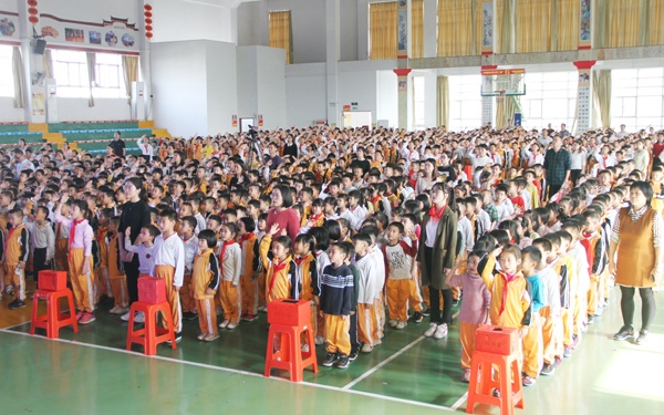 活動由大隊委五(3)中隊宋俊霖、五(2)中隊歐子蘊兩位小主持人負責主持,在莊嚴的國歌聲中拉開了本次愛心捐款的帷幕。首先全校師生共同觀看視頻“中山慈善萬人行”。視頻分享了慈善萬人行捐款的意義,同時也教育孩子們要有愛心,讓愛的光芒照耀更多的人。緊接著由老師們和舞蹈隊們帶來的手語操表演《愛的奉獻》贏得了大家的一致好評。