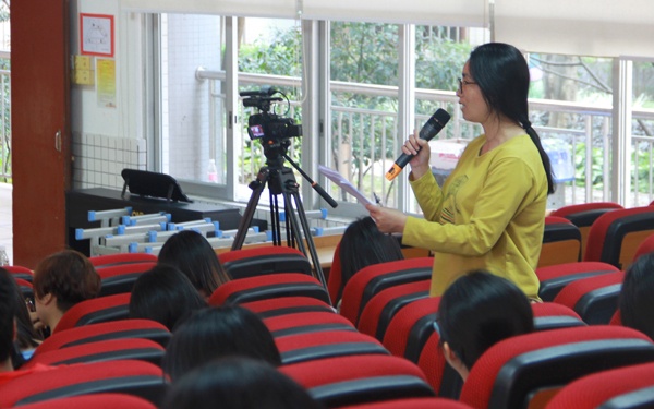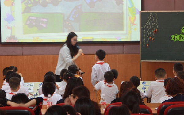 活動分四個議程進行,先是梁梓韻老師的觀摩課,然后梁梓韻老師對這節課的說課,之后是各學校老師的評課及領導講話總結。