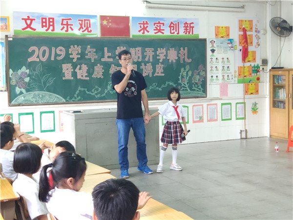 何艷霞副主任在開學(xué)典禮上發(fā)表了熱情洋溢的講話,何主任回顧了在過去的一年我們所取得的成績,然后與同學(xué)們重溫“學(xué)校的一日常規(guī)要求”,何主任的講話特別重視“文明禮貌”、“行為習(xí)慣和學(xué)習(xí)習(xí)慣養(yǎng)成”、“守紀(jì)”等方面的教育,并希望同學(xué)們在好好學(xué)習(xí),積淀知識,掌握本領(lǐng)的同時努力做一個遵紀(jì)守法、學(xué)會感恩、學(xué)會自律,學(xué)會創(chuàng)新的新時代好少年!