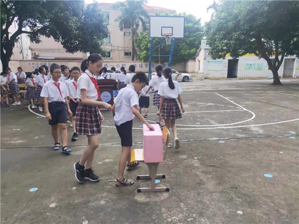 散學(xué)典禮最后的環(huán)節(jié)是響應(yīng)“廣東扶貧濟(jì)困日活動(dòng)”,組織全體師生進(jìn)行愛(ài)心捐款活動(dòng)。一張張承載著老師們和同學(xué)們愛(ài)心的錢(qián)幣被投放到捐款箱里,捐款箱笑了,老師們和同學(xué)們也笑了。