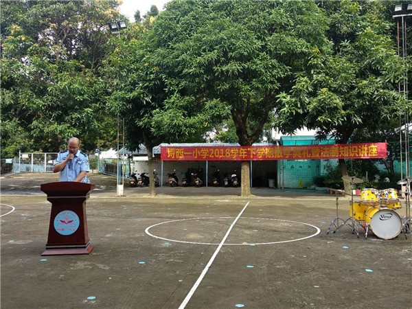 在雄壯的國(guó)歌聲中,五星紅旗冉冉升起。同學(xué)們以標(biāo)準(zhǔn)的隊(duì)禮向國(guó)旗致敬,送別2018學(xué)年春季學(xué)期。今天是假期生活的起點(diǎn),也是學(xué)校和老師們牽掛的起點(diǎn)。如何讓學(xué)生過(guò)個(gè)安全快樂(lè)的假期,學(xué)校法制副校長(zhǎng)鐘警長(zhǎng)從“家具安全”“交通安全”“法制知識(shí)”“憲法教育”“掃黑除惡”“掃黃打非”等方面對(duì)同學(xué)們進(jìn)行教育,鐘警長(zhǎng)舉出一個(gè)個(gè)鮮活的例子,全體師深受教育。