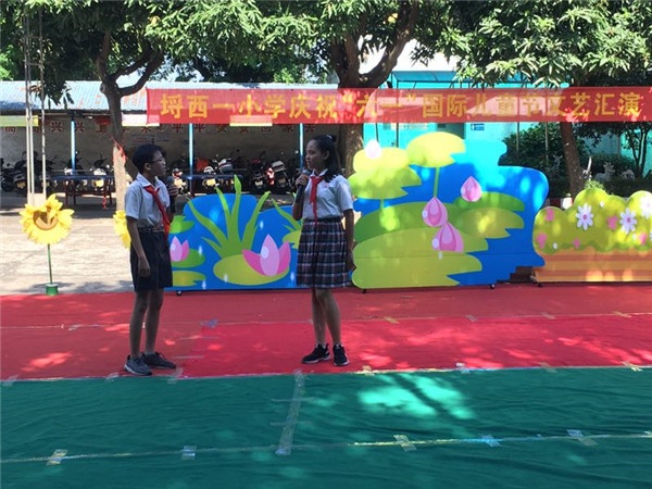 上午8時,隨著國歌的奏響,國旗的徐徐升起,為活動拉開了帷幕。何麗歡副校長代表學校為此次文藝匯演致辭,向全體學生獻上最衷心的祝福。此次活動形式多樣,節目多多。舞蹈、獨唱、相聲、詩歌朗誦等異彩紛呈,展現了埒西一小學學生的多才多藝。在節目表演之余,穿插了一、二年級少先隊入隊儀式、“文明禮貌之星”頒獎、讀書節系列活動頒獎、學校計算能力競賽頒獎。在特別的日子里進行嘉獎,為學生努力所得的知識成果附上特殊意義,同時鼓勵學生再接再厲,再創佳績。在文藝匯演的尾聲,何艷霞主任進行安全教育,向學生傳達安全知識,強調假期必須嚴防溺水,注意安全等。