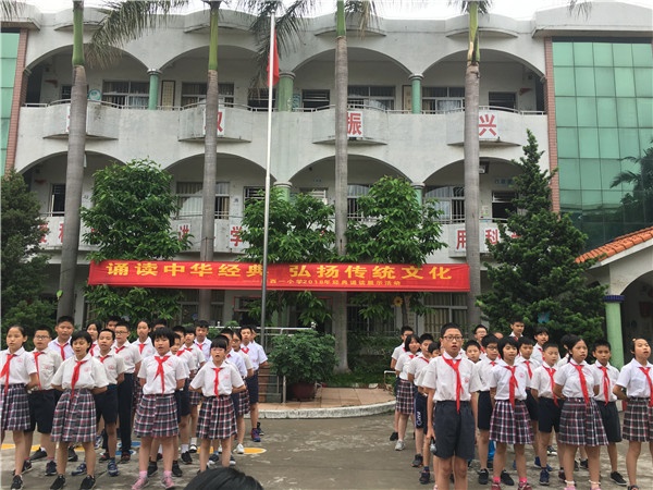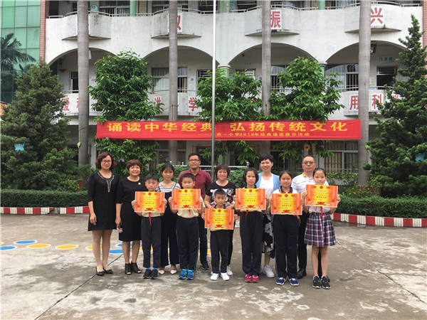 誦讀中華經(jīng)典,弘揚(yáng)傳統(tǒng)文化。2018年4月28日下午,埒西一小學(xué)在升旗臺(tái)前成功舉辦2018年讀書(shū)節(jié)之經(jīng)典誦讀比賽活動(dòng)。活動(dòng)由語(yǔ)文科陳淑芬老師和四年級(jí)兩名同學(xué)主持。比賽以脫稿朗誦為主要形式,大部份班級(jí)還穿插上音樂(lè)、舞蹈、武術(shù)等,充分發(fā)揮學(xué)生的朗誦才華。每班朗誦時(shí)間3--5分鐘,按照中年級(jí)、低年級(jí)、高年級(jí)的出場(chǎng)順序進(jìn)行。誦讀內(nèi)容豐富多彩,其中有朗朗上口的《三字經(jīng)》《笠翁對(duì)韻》,有激動(dòng)人心的《串讀憫農(nóng)》《春夏秋冬》,有激情豪邁的《愛(ài)國(guó)情》《歌詠詩(shī)詞》等。這次比賽評(píng)出了最具活力獎(jiǎng)和最具創(chuàng)意獎(jiǎng)各六名。比賽后,何麗歡副校長(zhǎng)作了小結(jié),她勉勵(lì)全體師生多讀經(jīng)典,讓自己成為一個(gè)會(huì)閱讀,善思考,有書(shū)香味的人。最后,二(1)班、三(1)斑、五(2)班等班級(jí)獲得了最具創(chuàng)意獎(jiǎng)。