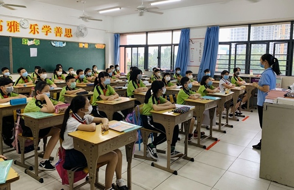 在疫情防控的特殊時期,為了防止聚集,四、五、六年級師生在教室以視頻形式舉行了別開生面的“復學儀式”。何德雄校長以“開啟新征程,展現新擔當”為主題,引導學生正確理性看待疫情,有家國情懷,有擔當民族復興大任的時代新人。
