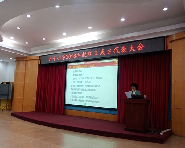 2018年9月29日下午,升平小學在報告廳隆重舉行教職工民主代表大會。參加民主大會除了26位教代會代表,還有70位教師。