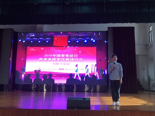 國家憲法日晨讀活動包括升旗儀式、教育部領(lǐng)導(dǎo)領(lǐng)讀憲法部分條文、演唱歌曲《憲法伴我們成長》、宣布第三屆全國學(xué)生“學(xué)憲法講憲法”活動全國總決賽獲獎名單、全國總決賽獲獎優(yōu)秀學(xué)生現(xiàn)場展演、教育部領(lǐng)導(dǎo)講話等環(huán)節(jié)。《憲法》是以法律的形式確認了中國各族人民奮斗的成果,規(guī)定了國家的根本制度和根本任務(wù),是國家的根本法,具有最高的法律效力。全國各族人民、一切國家機關(guān)和武裝力量、各政黨和各社會團體、各企業(yè)事業(yè)組織,都必須以憲法為根本的活動準則,并且負有維護憲法尊嚴、保證憲法實施的責任。同學(xué)們精神飽滿,情緒激昂,大聲跟讀,用心體會憲法的莊嚴與神圣。