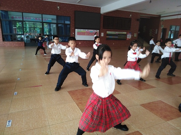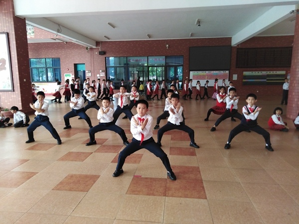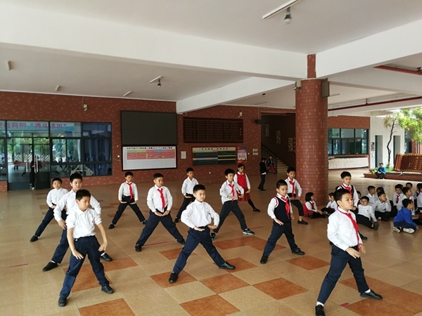 11月5日上午的大課間活動,升平小學(xué)在一樓大堂熱鬧非凡,原來洪拳社團(tuán)的精英又在進(jìn)行排練活動,目的是為了迎接小欖鎮(zhèn)少先隊(duì)展示活動。