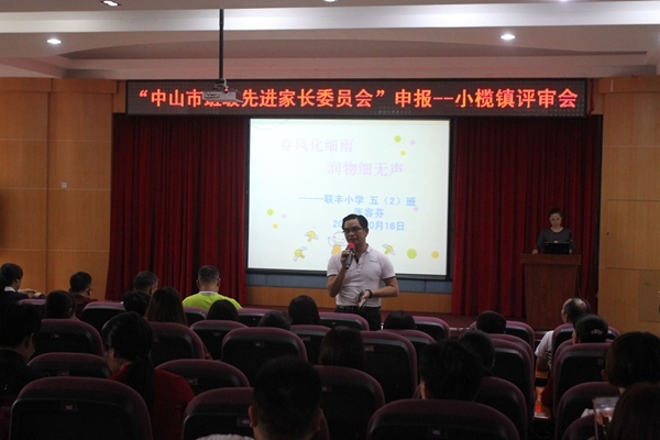 參加本次活動的有小欖鎮教育事務指導中心鄧永飛副主任、各校主抓德育的行政及家長委員會代表。這次評選活動最大的亮點是以家長委員為主體,從資料申報到做課件、演講由家長委員會全部完成。由于申報先進家委的校級、年級、班級達四十多個隊伍,因此,比賽分兩個場地進行。“校級先進家委會”及“年級先進家委會”在會議室,“班級先進家委會”在報告廳進行。在演講匯報中,各個評選隊伍的家長委員會代表淡定自如,穩重大氣,加上ppt、視頻、或隊伍展示等輔助,精彩匯報家委會工作情況與亮點。最后,“校級、年級先進家委”賽場總評委陳葵芳主任及“班級先進家委”賽場總評委林木茂校長做了精彩而到位的點評。陳主任表揚各校、各年級家委都能積極、真情投入到家委工作中,學校活動、家庭教育、學校管理、學校特色發展等都能與學校同心,為學校服務,為孩子護航,是學校發展的同盟軍,助推器。林校長表揚這次活動家長委員會能精心準備,善于總結,亮點紛呈,熱情展示,是互相學習的好平臺。