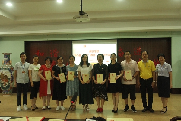接著,黨支部書記麥校長向全體黨員發出倡議——“解放思想,做‘四有教師’,爭當時代先鋒” 。旨在進一步提高基層黨組織的凝聚力和戰斗力,激發黨員教師先鋒角色意識,增強黨員的榮譽感、責任感和使命感,保持黨員隊伍的先進性和純潔性。麥書記強調:一是要主動學習“強意識”。讓每一位黨員主動亮出身份,不斷增強政治意識,強化黨員意識,提升自我教育、自我管理、自我覺醒的自覺性,讓自己在各個方面都成為集體中的先鋒形象。二是要解放思想“強信念”。始終牢記入黨誓詞,堅定理想信念,不忘初心。尤其要有攻堅克難的決心,敢于直面問題,切實剖析自身存在的問題,有不解決問題不罷休的決心。三是要勇于反思“當先鋒”。要求黨員教師要立足崗位講貢獻,在學校各項教育教學工作中勇當先鋒,在關鍵時刻站得出來、沖得上去;在難題面前敢闖敢試、敢為人先;在矛盾面前敢抓敢管、敢于碰硬;在風險面前敢作敢為、敢擔責任。四是關于跨越“促創新”廣大黨員教師要發揮自己的聰明才智,要具備“到教育教學前線展身手,到群眾前面挑重擔,到急、難、險、重的崗位上錘煉黨性”勇氣、直面問題的決心、迎接挑戰的氣概、直面問題,帶頭創新,做創新的骨干。