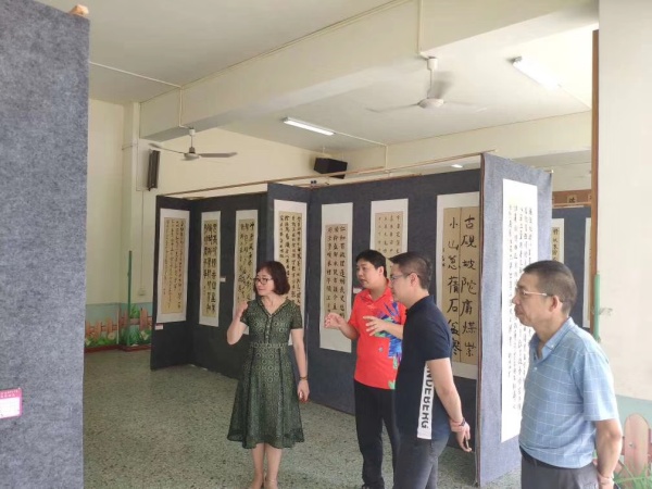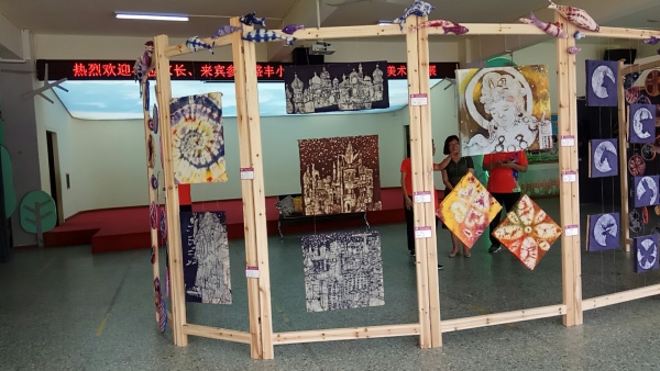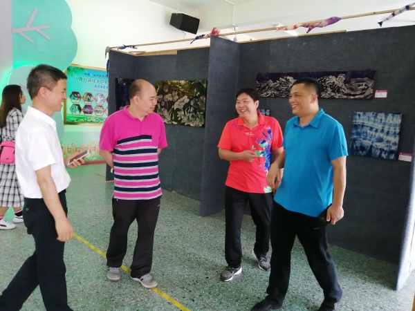 本屆社會開放日活動內(nèi)容十分豐富。學(xué)校的風(fēng)雨長廊呈現(xiàn)了師生書書法120多幅、蠟染扎染作品80多幅、裝飾畫50多幅,絡(luò)繹不絕的來賓長駐展廳,欣賞之余還拿出手機來拍攝。小欖鎮(zhèn)是全國書法之鄉(xiāng),在傳承書法藝術(shù)工作上一直不遺余力,幾年以來,學(xué)校教師以及書法社團在楊彩均老師引領(lǐng)下潛心練習(xí),形成濃厚的氛圍,作品的形式也逐漸多樣起來,小欖鎮(zhèn)書法中心組組長、全國書法家協(xié)會會員李志平盛贊學(xué)校師生書法水平進步神速、整體提升得很快;而小欖鎮(zhèn)黨委委員張曉陽女士則在盛贊師生書法水平高的同時勉勵學(xué)校要繼續(xù)加強書法這一傳統(tǒng)文化的的傳承。學(xué)校蠟染扎染社團展出的作品形式多樣,藝術(shù)感很強,這個創(chuàng)團還不夠一年的社團在廖月萍老師帶領(lǐng)下展現(xiàn)了旺盛的創(chuàng)作熱情,同時,為小學(xué)開展蠟染扎染藝術(shù)邁出了十分有益的探索步伐。歐紫琪老師帶領(lǐng)低年級孩子的裝飾畫也呈現(xiàn)出兒童獨有的藝術(shù)視角,構(gòu)圖宏觀而又不失精細,也受到贊賞。