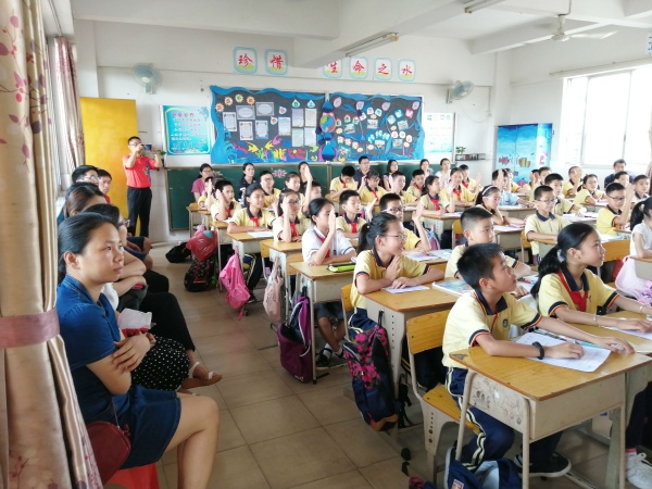 參觀完風(fēng)雨長廊的書畫作品后,大部分的家長來賓們挪步到孩子們的教室里。他們走進了教室,與孩子們一起上課。自2014年起,學(xué)校開展了改善課堂生態(tài)流程的教學(xué)改革研究,以學(xué)生為中心、以學(xué)為中心的生態(tài)課堂很好地促進孩子發(fā)展,而開放日所展示的課堂便也以“學(xué)為中心”為基點而展開,每個教室都在向家長、來賓展示生態(tài)課堂的魅力,如五(1)班梁燕霞老師執(zhí)教的《探索神奇的本草世界》把孩子們帶進了本草的世界,一(3)班謝麗萍教師執(zhí)教的英語課堂《Unit10》點燃了孩子們的學(xué)習(xí)興趣,廖成濤老師巧借呼啦圈讓六(1)班的大小孩感受了籃球運球的趣味......這一天孩子們課堂表現(xiàn)一如既往地棒,家長來賓們對盛豐小學(xué)教師們的教學(xué)水平表示十分滿意,紛紛為教導(dǎo)有方的教師們點贊叫好。