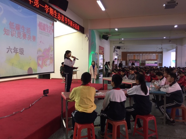 2018年12月17日早上第一節(jié),盛豐小學(xué)在學(xué)校風(fēng)雨平臺(tái)舉行了六年級(jí)“低碳生活”為主題的閱讀知識(shí)競(jìng)賽決賽。每班3名選手們通過(guò)激烈的初賽,今天分別代表班級(jí)進(jìn)行決賽,他們都是班級(jí)的佼佼者。