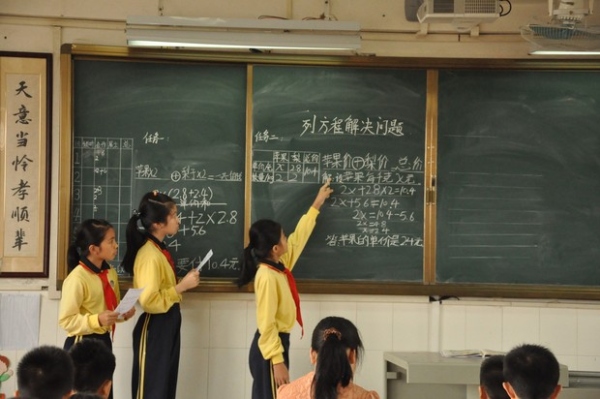 隨著清脆的上課鈴聲響起,五年級的徐惠霞主任為參與研討活動的老師們上了一節(jié)精彩的小組合作學(xué)習(xí)研討展示課《列方程解決問題》。徐主任采用了小組合作模式充分體現(xiàn)了“自主學(xué)習(xí)、自主探究”的教學(xué)特點,通過多次的小組合作學(xué)習(xí)來展現(xiàn)學(xué)生對解方程的理解,使學(xué)生樂在課堂中。學(xué)生以小組合作的形式對例題進行研究,然后把小組研究成果板書到黑板上,再展示給大家看,學(xué)生的精彩講演贏得了陣陣掌聲。學(xué)生們在在愉快的合作過程中學(xué)到知識。