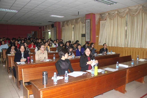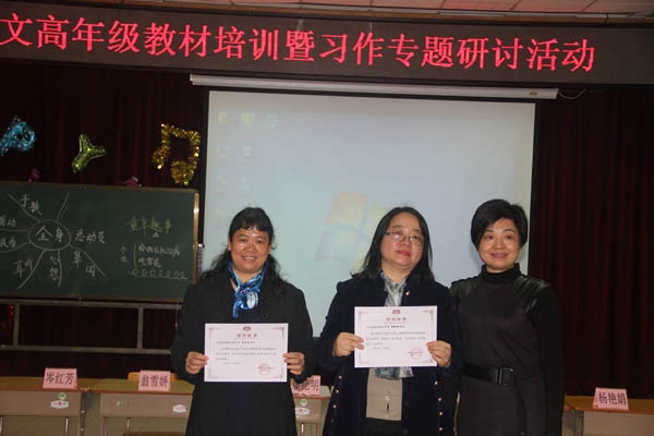接著,由一線教師永寧小學的廖艷明老師作《讀寫結合、多元評價》的專題報告。廖老師分享了自己多年的作文教學經驗,充分挖掘文本,注重讀寫訓練,形成了自己行之有效的研究方法:以讀促寫;以教材為借鑒;以仿寫、創寫為策略;融入個人體驗……廖老師旁征博引,涓涓細水般的闡述實實在在地切中了大家的寫作困惑。