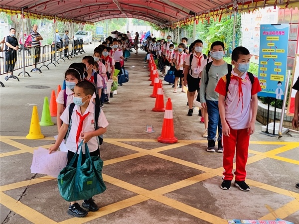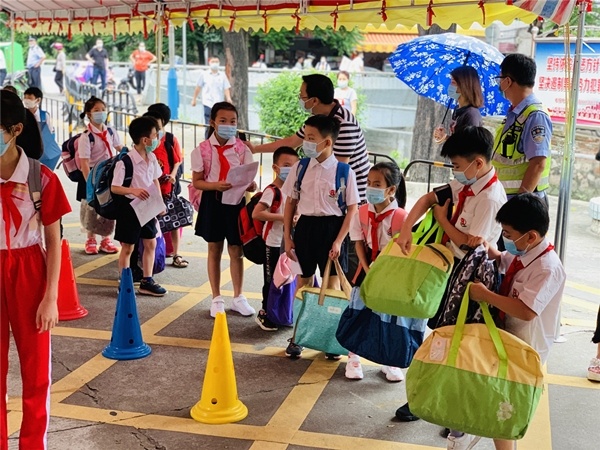 針對近期學生分批上學、放學的一些細節問題,學校也開展了詳細的安排,家長們對孩子的接送上小學時間已經有所把握,在學校指定地點排好隊,與校門口排好隊的學生眼神、揮手示意,認領到自己孩子后即領即走,現場班主任和老師、家長志愿者維持學校門口的交通、秩序,保證上學、放學的安全有序。